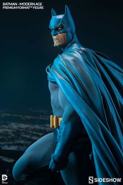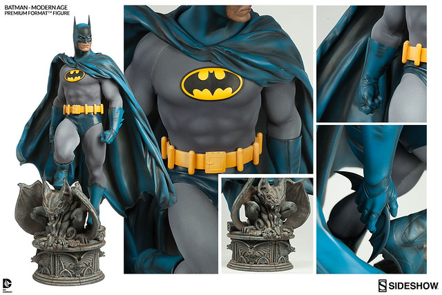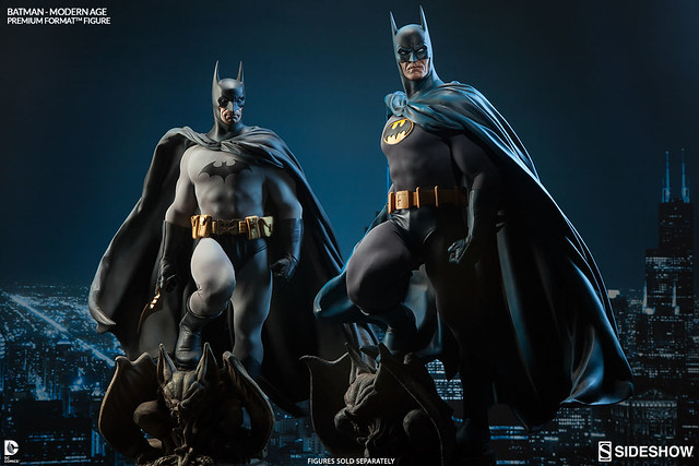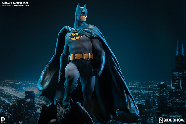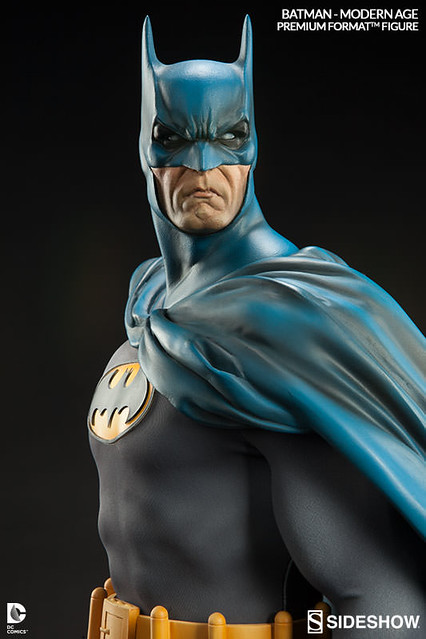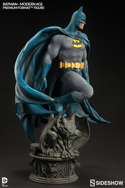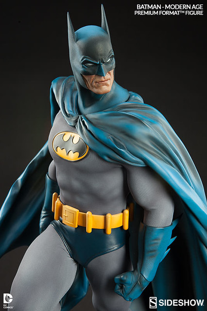 Sideshow Collectibles 公司又將在其旗下最高水準的「Premium Format™ Figure」雕像系列,推出最新1/4 比例的經典「蝙蝠俠」的雕像作品。而這次所推出的樣式是1970 年代最著名的「摩登時代」(Modern Age)造型的蝙蝠俠,灰色、藍色的緊身蝙蝠裝搭配鮮豔黃色的皮帶樣式。