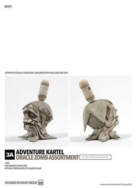 繼日前threeA 公司2015 年02 月13 日黑色星期五,一口氣推出七款「他媽的家庭組」(FUCKING FAMILY COUP)中的角色成員之後,又將回歸到原本Adventure Kartel 系列推出許多人都超級想要的豪華配件:「僵屍頭」(ORACLES)啊!