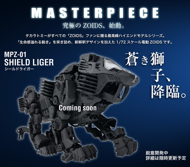 日TAKARA TOMY玩具公司預計推出ZOIDS シールドライガー(ライオン型)重盾獅虎(獅子型態)暫時翻譯,Shield Liger(シールドライガー)是由獅子與老虎所交配的生物“獅虎”為主題作為設計。在ZOIDS故事設定當中是海力克共和國為了對抗季尼巴斯帝國所生產的Saber Tiger(サーベルタイガー),開發生產的一款高速作戰用獅型ZOIDS。