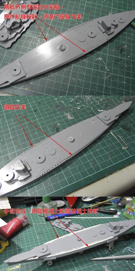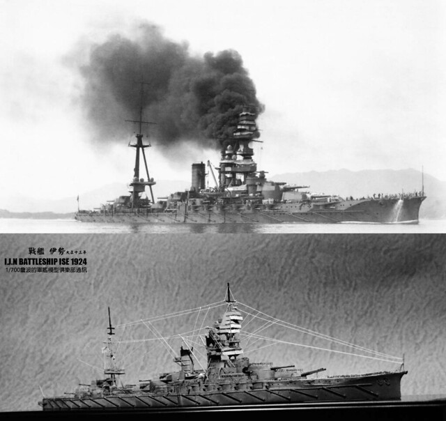 由於伊勢在1935年大改裝後,兩舷有增加艙間,艦體顯得較胖,因此製作1924年的伊勢必須進行艦體的瘦身