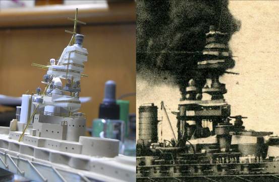 用銅管、膠版根據歷史照片搭建艦橋,沒辦法作得百分之百一樣,但求誤差不要太大就好