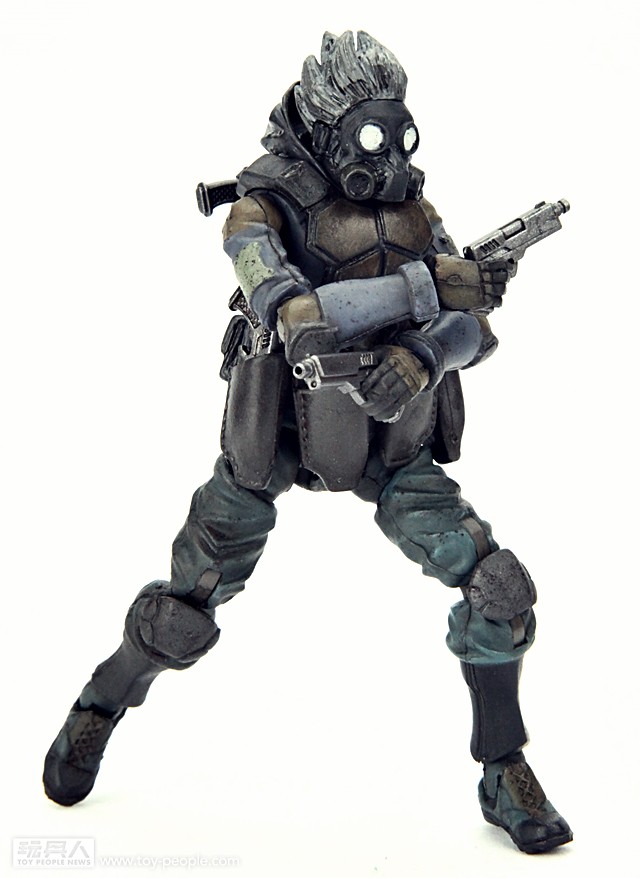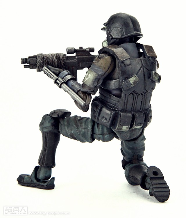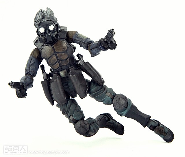 ▼ 時常把玩可動人偶的玩具人一定很明瞭,腳部的可動性對於人偶的姿態影響非常的大;如果沒有靈活的可動範圍,或是穩定性來支撐,人偶的姿態變化性就會少了非常多。《酸雨戰爭》的人偶腿部的關節除了股關節之外,大腿部分、膝蓋雙重關節以及腳踝雙重關節的設計,提供了相當優秀的可動性。