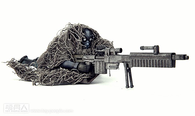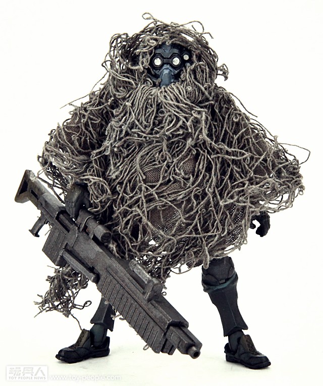 ▼ 最後登場的是小編這次最喜歡的角色 - 坦克狙擊殺手“Argus”。除了全新製作的頭雕、武器之外,“Argus”是市面上玩具中,少見的將狙擊手裝備的吉利服製作出來的作品。