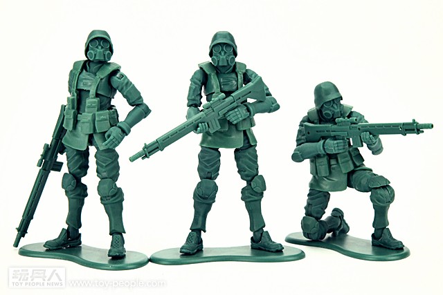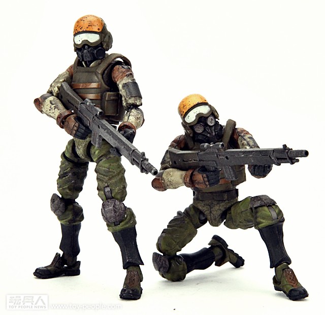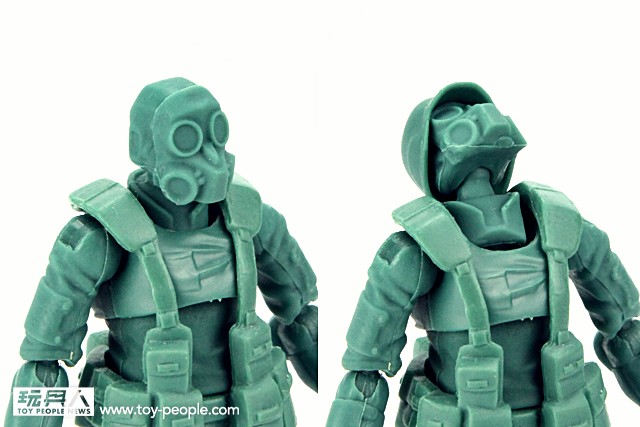 ▼ 《酸雨戰爭》的人偶,除了“英雄單位”的公鹿小隊成員們擁有獨特的頭雕之外,每一款都能夠拆下頭盔交換不同的裝備。除此之外,脖子與軀幹的連結使用了雙重關節,所以能夠做出許多可動人偶都辦不到的完全抬起頭姿勢。