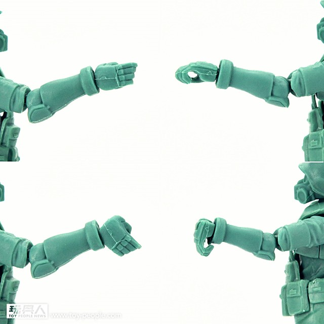 ▼ 受到小尺寸的限制,所以《酸雨戰爭》的人偶無法在手腕部分,使用能夠靈活動作的球狀關節;除了手腕能夠旋轉之外,左手設計成能夠水平彎曲,右手則是垂直彎曲,能夠做到各種標準的持槍姿勢。
