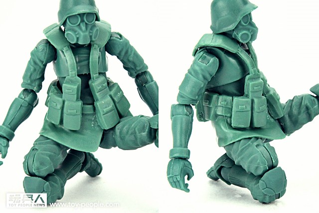 ▼ 除了素體構成之外,《酸雨戰爭》的人偶都會加穿防彈背心或戰術服飾來增添角色的差異性;服裝採用了具備彈性的軟性材質,完全不影響身體的彎曲、旋轉或蹲姿;除此之外,在上身挺立的情況下,服裝也能夠相當服貼、有精神,讓角色更加生動、具有氣勢。