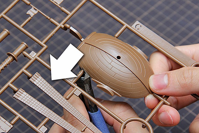 ▼ 首先我們來進行剪裁的動作。偉大的船艦收藏集系列在零件框架的設計上,是採用易拆式的湯口,也就是湯口小可以輕易一扳就把零件取下的設計。這點跟SD鋼彈系列是一樣的。但是,若是使用斜口鉗可以讓零件更加完整!