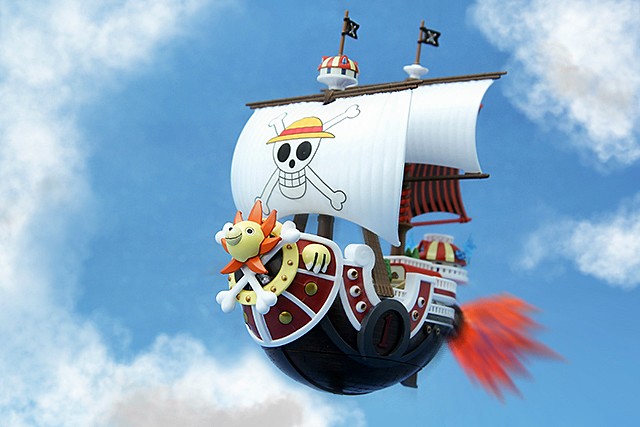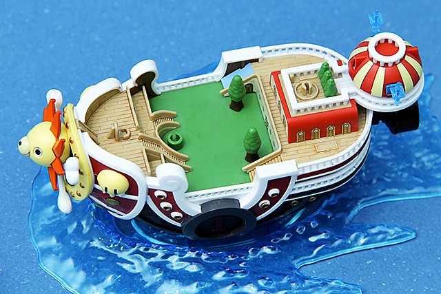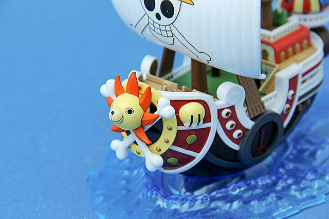 ▼ 偉大的船艦收藏集系列第一號「千陽號」。千陽號是由草帽海賊團的船匠“佛朗基”所設計,造型上有獅子頭造形的船頭以及「士兵船塢系統」為其主要特色,是草帽海賊團的第二艘海賊船。