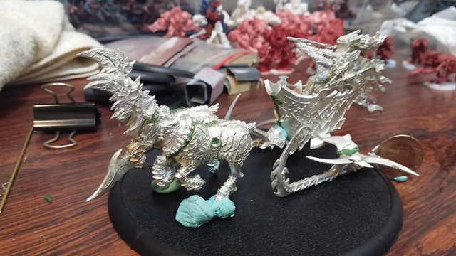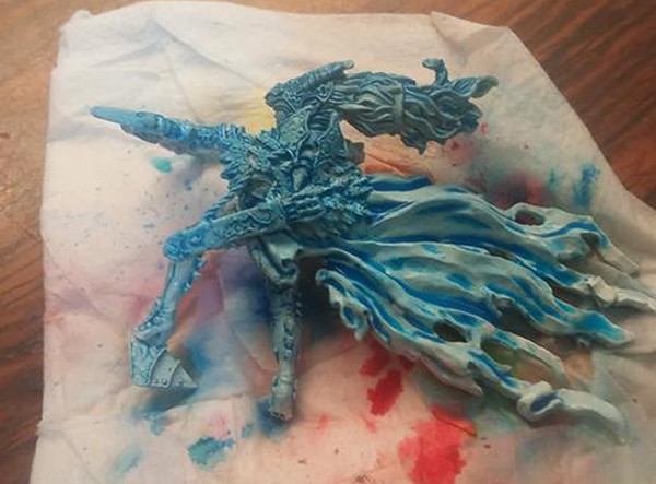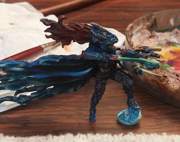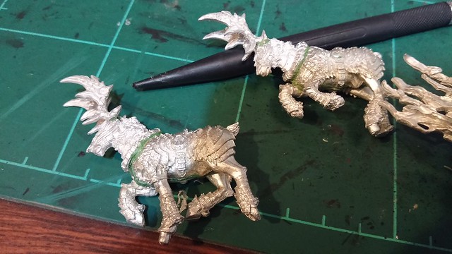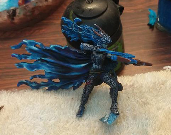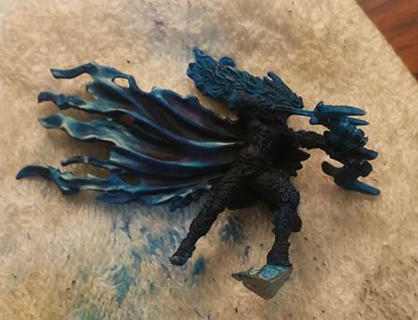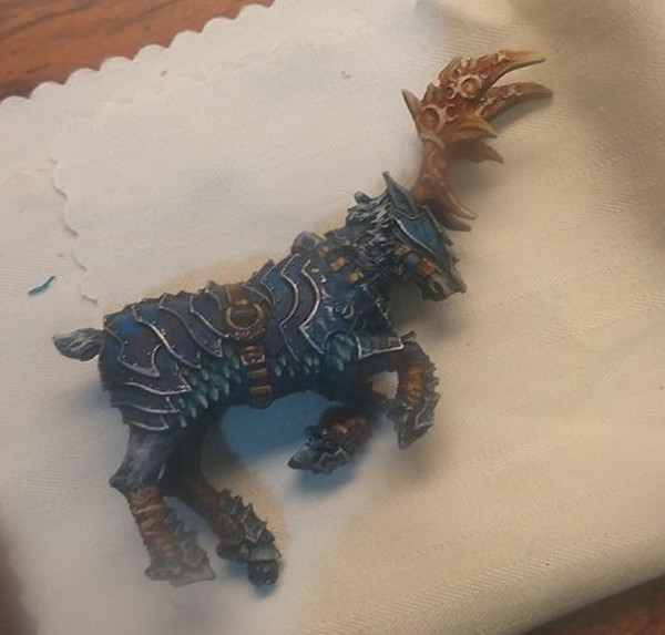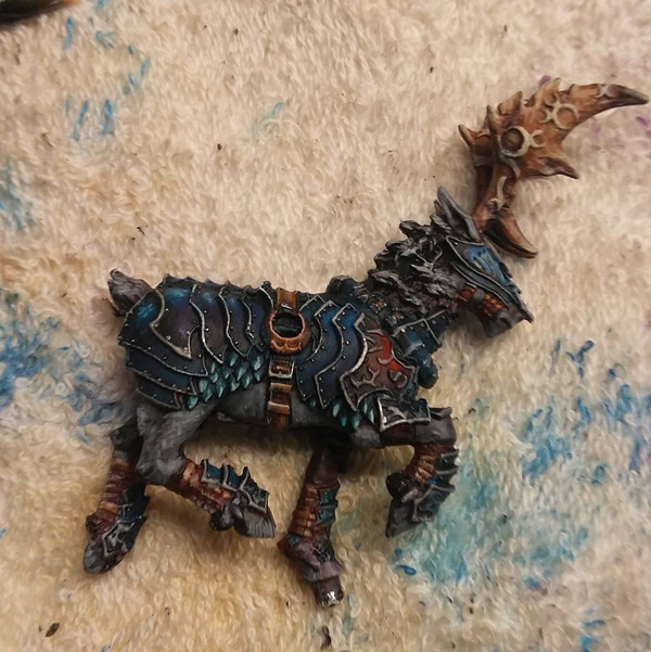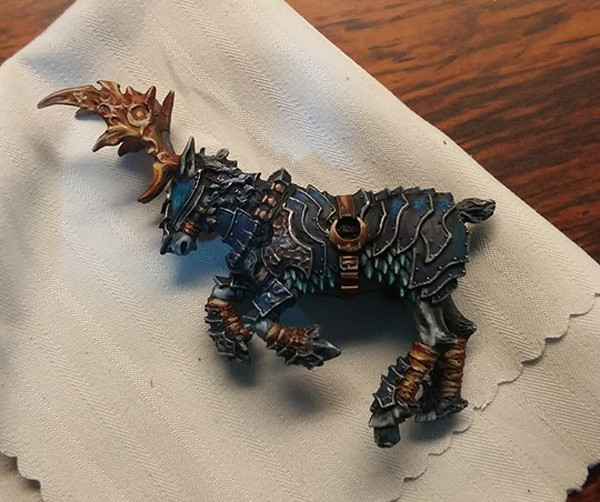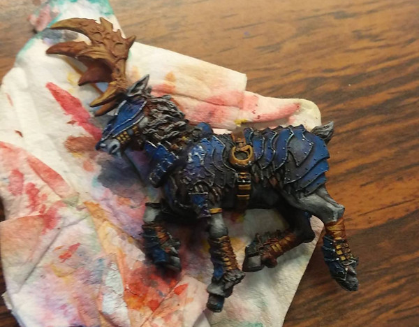 強化披風、盔甲乾刷銀色。皮膚、犄角上色。