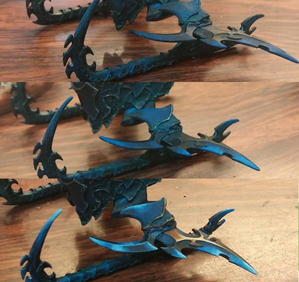 戰車刀鋒上色,使用仿金屬光光澤(nmm)的畫法。