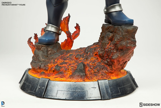 這次由Sideshow Collectibles 所推出的邪惡之神「達克賽德」(Darkseid)可是DC 宇宙最強大的反派之一了,他企圖操控DC 宇宙間一切,而聽說MARVEL 的邪惡大反派薩諾斯的發想與設計也是來自達克賽德的造型喔!雄壯威武的身材加上熔岩地台的呈現,整體的造型非常的邪惡啊。不過小編覺得購買這款超巨大1/4 比例達克賽德的玩具人絕對要加購一盞紅色的燈啊,陰森感十足啊!
