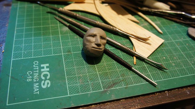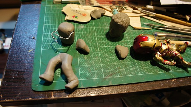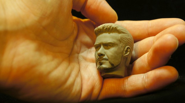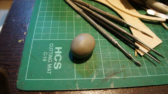 為了搭配耳機塞鋼鐵人的比例,只能用雕的來製作東尼的小公仔。萬事起頭難……..先揉成一顆球狀來製作頭部。