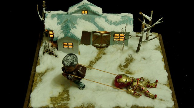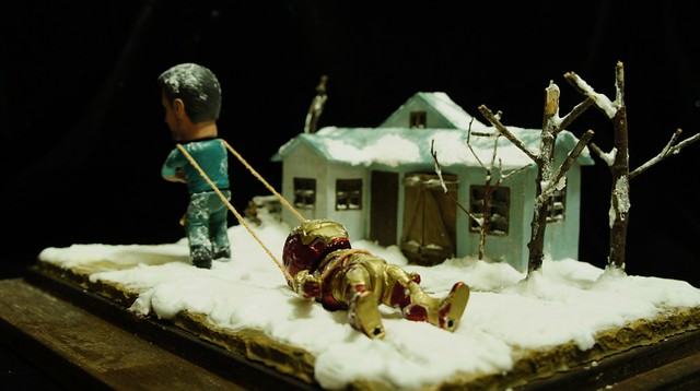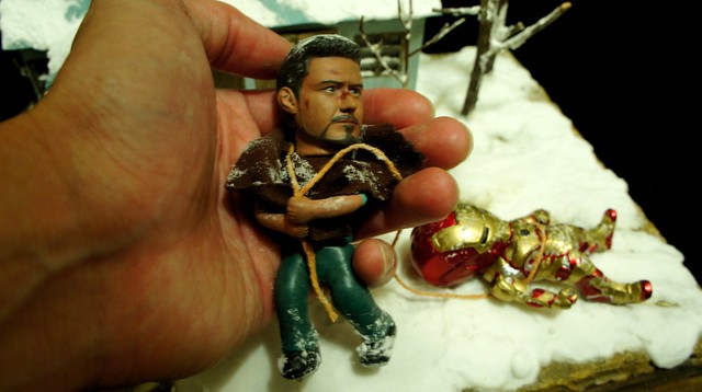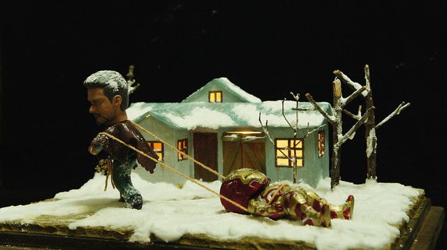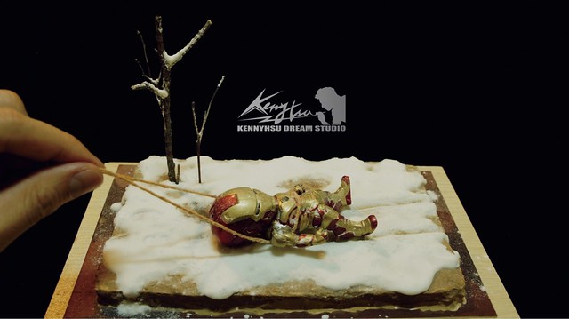 最後一張,東尼累了,換我來拖走沒電的MK42鋼鐵人。謝謝各位的觀賞了!