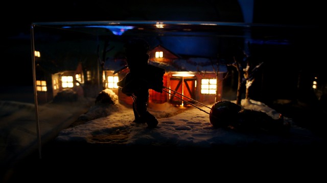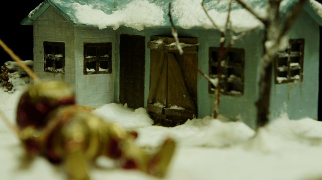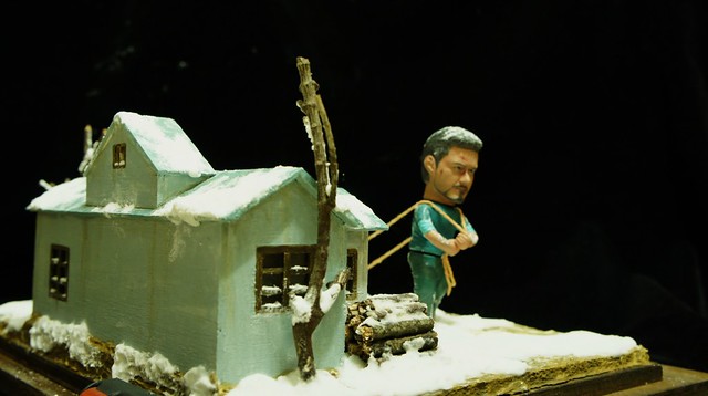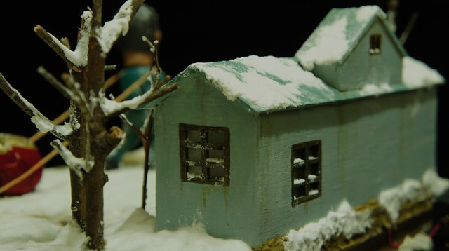 地台噴上泥土的顏色,屋頂鋪上雪