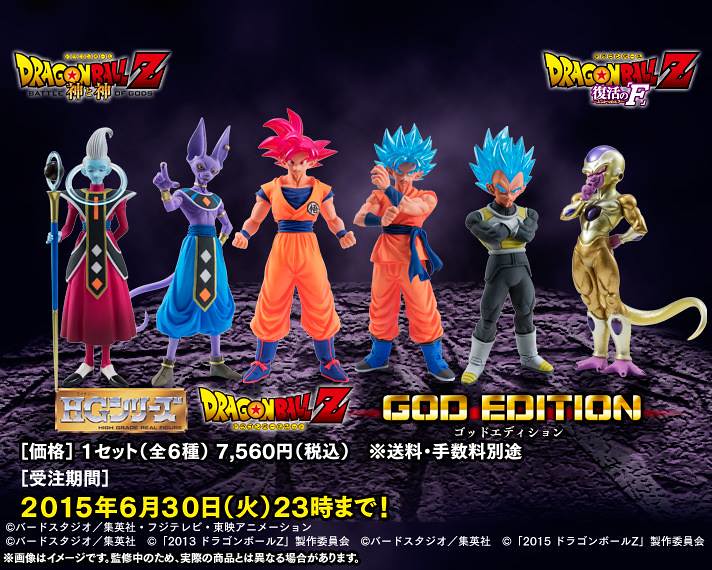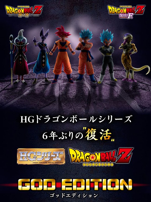 日Bandai萬代玩具公司將推出其HG食玩系列以ドラゴンボールZ GOD EDITION 七龍珠Z 神限定(暫時翻譯),收錄之前《七龍珠Z:神與神》和將上映《七龍珠Z:復活的F》兩部劇場版當中登場的主要七龍珠角色人物,並以新透明材質來表現賽亞人狀態的悟空和達爾。