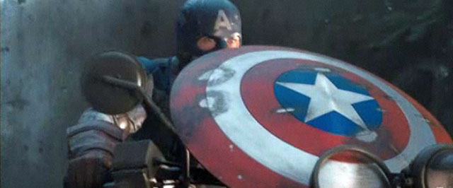 ▼ 把盾牌安裝在車頭,是美國隊長從電影第一集就常出現的作法。相當地經典。