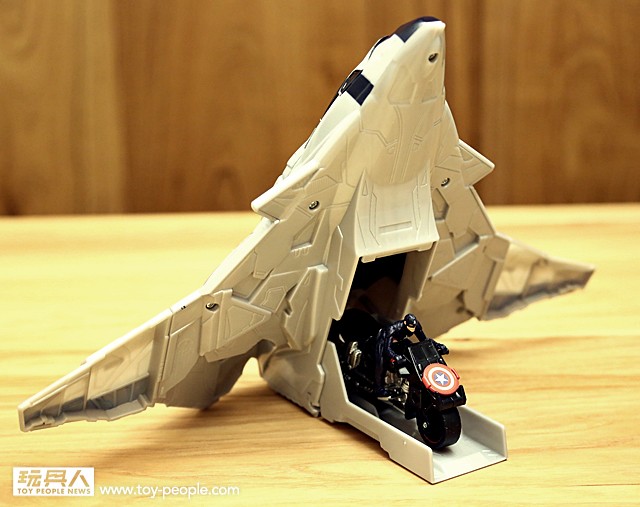 ▼ 這個組合,是以《復仇者聯盟2:奧創紀元》劇中黑寡婦從戰機中直奔而出的場景,加上美國隊長的摩托車為發想。
