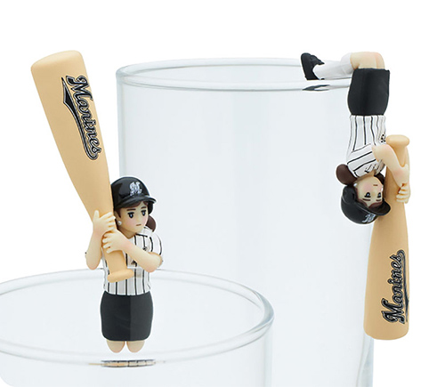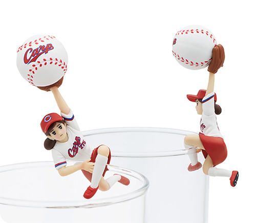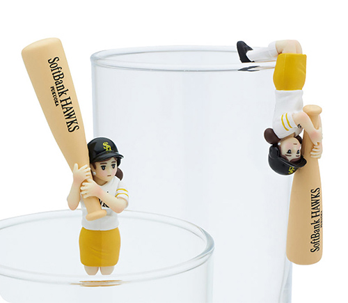 新作《杯緣子 野球篇》,將以打擊、防守兩種生動姿態來呈現棒球的意像,並且搭配上日本知名職棒隊伍的服飾,就連棒球、球棒上也印有該球隊的專屬圖案,不管你是哪一隊的球迷,都有機會讓球團專屬杯緣子為你應援!「棒球的杯緣子」(ボールのフチ子)以生動的姿態,呈現了杯緣子逼真、宛如越過柵欄將球攔截;「球棒的杯緣子」則是利用打擊的姿態,藉由腋下或雙腳鉤住杯緣呈現出經典的倒掛模樣。