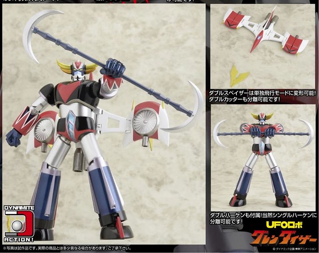 由EVOLUTION TOY玩具公司的Dynamite Action!系列這個月份將推出グレンダイザー UFOロボ グレンダイザー 克雷飛天神&飛天神機 套裝組合(暫時翻譯),台灣於華視頻道於1987年6月至1988年11月期間播出,當時翻譯名稱為金鋼戰神,由駕駛者李宏志(宇門 大介/デューク・フリード)所操作的巨大守護機械人克雷飛天神。