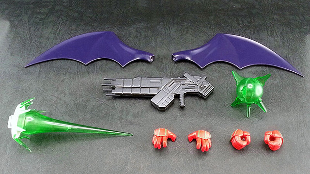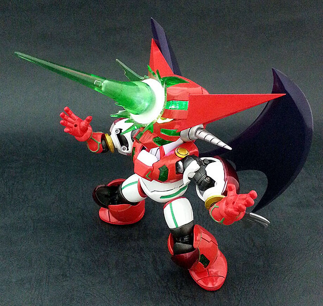 還有ゲッタービーム発射狀態的再現效果配件等,這次的面部內配置有Led發光裝置,身上也多部分使用透明材質來呈現機械層次的感覺,背部飛翼配件也可以呈現拆卸模樣,之後將會再推出ES合金系列的ゲッター1(蓋特ー1號)、ゲッター2(蓋特ー2號)和ゲッター3(蓋特ー3號)等等來讓這個系列更加完整,照片最後一張是之後將推出的蓋特ー1號對照圖片,提供給喜歡「蓋特機器人」的玩具人參考。