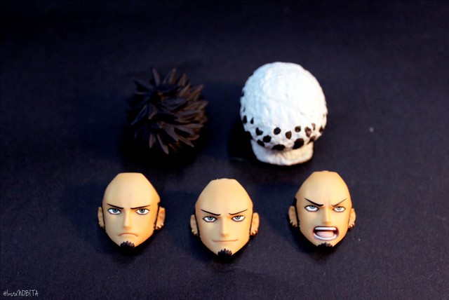 頭雕部份有羅的正字標記白色毛帽及脫帽頭雕,臉雕部分跟魯夫一樣有三個。不得不再提一下,M社的頭雕實在是太讚了!