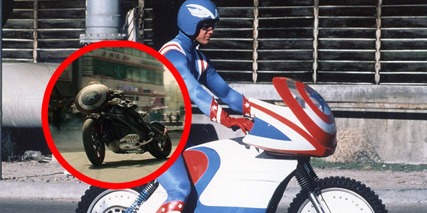 黑寡婦在南韓大街騎車時,將掉在路上的美國盾牌撿起來,放在摩托車前頭,這無疑是致敬 1979 年的美國隊長在電視上播出的電影中,美國隊長使用的盾牌機車。