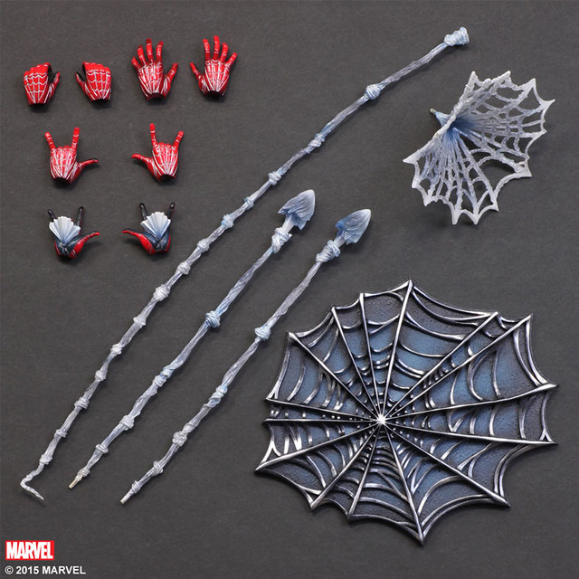 之前以MARVEL COMICS的變體版超級英雄“鋼鐵人”首波發行後,這次將以蜘蛛人來進行設計,把驚奇漫畫中蜘蛛人的身上造型藍紅配色沿用在加上部分的黑色,來加強其不一樣的外貌形象,附有多款可以替換手首配件,並附有多款不同造型模式的蜘蛛絲有傘狀、繩索狀等等,和一個專用地台也是以傘狀蜘蛛絲為造型。