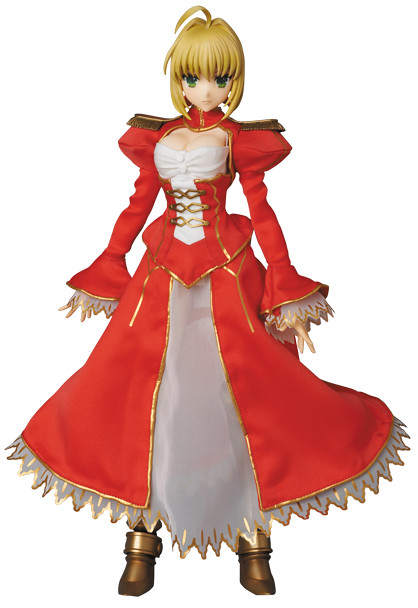 這次由日Medicomtoy玩具公司的RAH(Real Action Hero)系列來呈現其後續改編作品『Fate/ EXTRA』(フェイト/エクストラ)中主要角色人物Saber紅色衣裝版本(セイバーエクストラ),今次以RAH FEMALE Body 女性素體來執行Saber的12吋人偶。