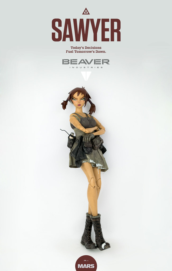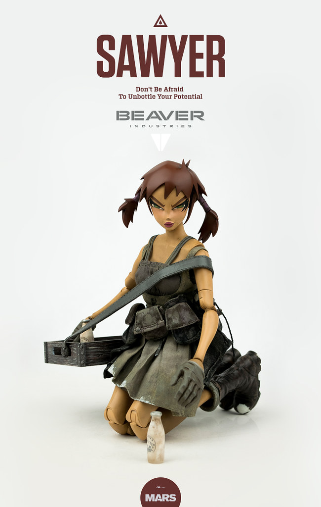 threeA 新銳設計師Crystal-Jade Vaughan 繼首款「牛奶小子」(MILKY BOT)作品之後,又將推出最新「牛奶補給妹」(SAWYER)的1/6 比例女偶作品。而這次的作品是來自Beaver Industries 的世界觀,而這個世界觀主要是在講述一個未來的伐木世界裡的故事。