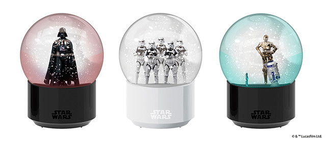 之前日本家電品牌amadana的副品牌imp.已推出過《星際大戰》R2-D2的雷射投影虛擬鍵盤,這次仍以《星際大戰》當中其他經典的角色人物為主題,把黑武士達斯‧維德、白兵和C-3PO、R2-D2等等變成桌上型的電子雪球(Electrical Snow Globe)產品,選在5月4日「星際大戰日」公開這樣有趣的主題商品。
