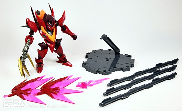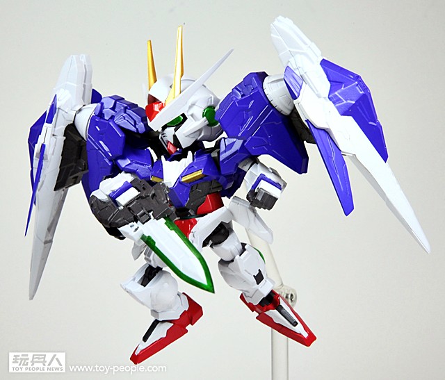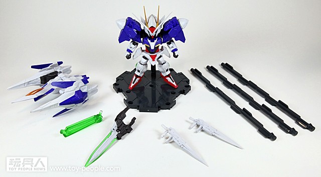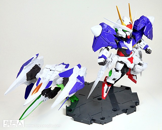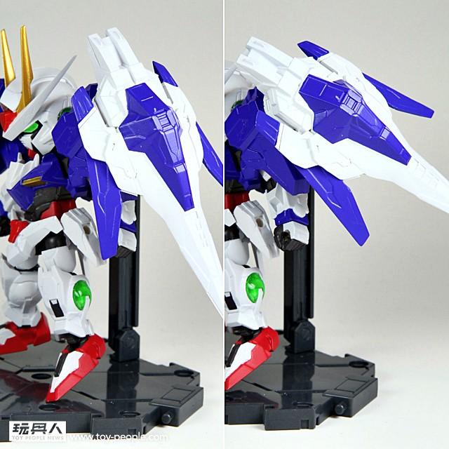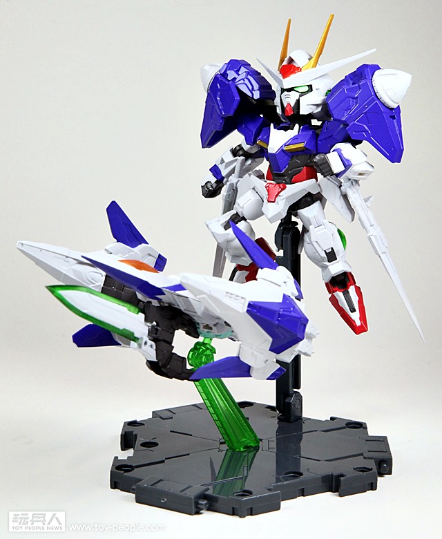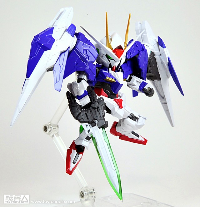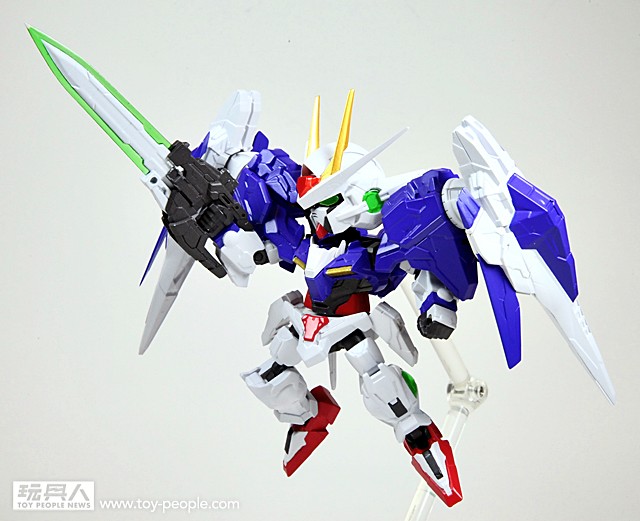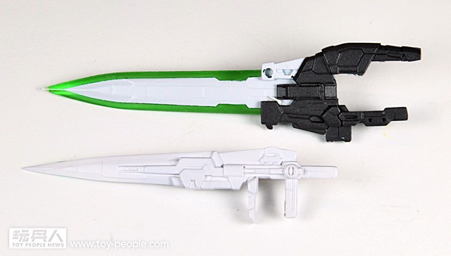 ▼ 武裝的部分,配備了兩把光束軍刀,以及一把GN劍。特別是GN劍使用了多重零件構成,並搭配透明特效零件呈現出造型。