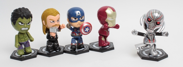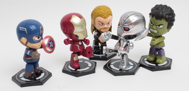 10款公仔包含:美國隊長、美國隊長-紅骷髏、鋼鐵人MARK1、鋼鐵人MARK6、X戰警-野獸、X戰警-風暴女、蜘蛛人、綠巨人浩克