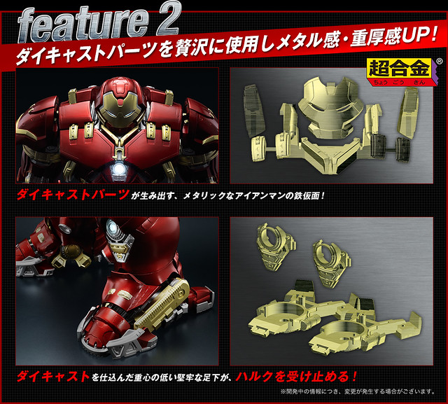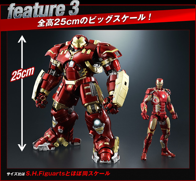 這次所推出的作品,集合了BANDAI 最暢銷的兩個系列品牌「S.H.Figuarts」與「超合金」,獲取兩個品牌多年來累積的技術,推出了與其他《復仇者聯盟》系列作品相同1/12 比例的高度可動人偶!外型採用了特殊的電鍍技術展現金屬的特殊光澤;部分關節使用合金打造,大幅強化角色關節的強度,穩定姿勢的平衡性、穩固性。