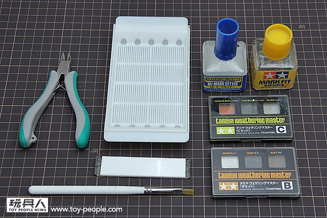 ▼ 完成水貼後,我們就來增加陰影。這時候我們需要舊化粉、舊化粉彩、畫筆跟棉花棒。