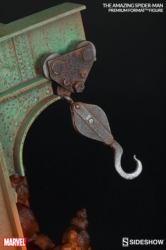 這一款作品設定是以蜘蛛人與他的死敵「綠妖精」的對戰場景為主題,蜘蛛人靈活地飛越在被炸斷的工程鋼骨上,藉由巧妙的造形設計與姿態調整,呈現出了幾乎不可能完成、充滿動感的飛身姿勢;除了蜘蛛人精彩的動態表現之外,作為地台的鋼骨施以了複雜、真實的舊化與鏽蝕塗裝,搭配上逼真的爆破效果,彷彿捕捉了激烈戰鬥的一瞬間!打造出了一款難得一見的精彩動態作品。
