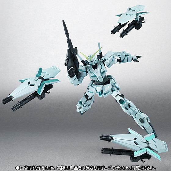 在episode 7「虹の彼方」中獨角獸鋼彈和報喪女妖最終射擊的高潮戲商品化一起推出兩機體同捆販售,這次重現了機體的精美外觀光澤感覺的塗裝,獨角獸鋼彈附有交換用手首左右各3種、光束軍刀(ビーム・サーベル)×2、盾(シールド)×3、機槍(ビーム・ガトリングガン)×3等等配件。
