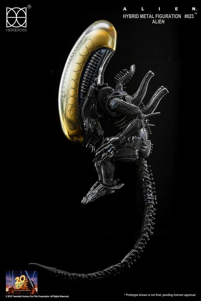 這次Herocross 依舊維持了高超的造型水準,將原作造型轉為《Hybrid Metal Figuration》特有、具巧妙平衡性的Q版造型;採用了合金製作,並且全身具有超過30處以上的可動關節,可重現異形的多種經典姿態。除此之外,最具特色的透明頭骨設計,也以特殊的透明PVC 材質製作,並且還保有了『異形』張開血盆大口之後,露出內嘴的駭人模樣!
