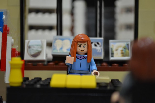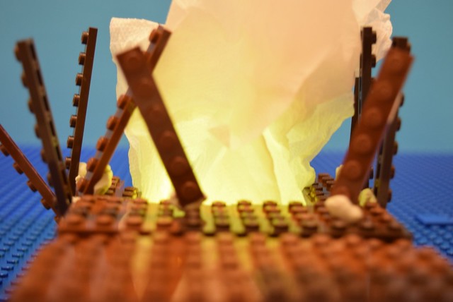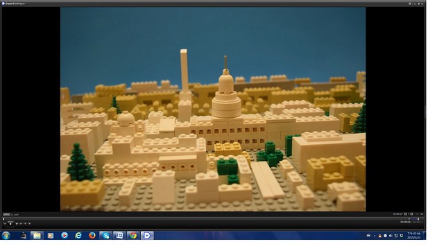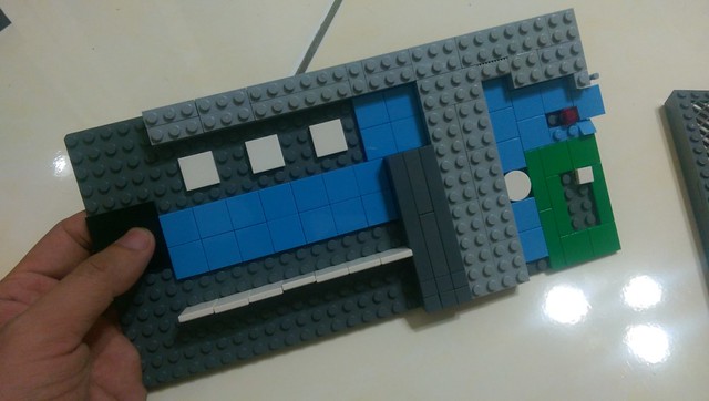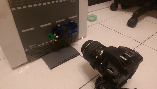 另一幕, 鏡頭在上, 有高向下拍的景是這樣搭的, 直接把樂高粘在牆上