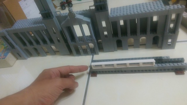 宴會廳外牆夜景, 還有火車, 其實都是小比例樂高磚用錯位法做出來的