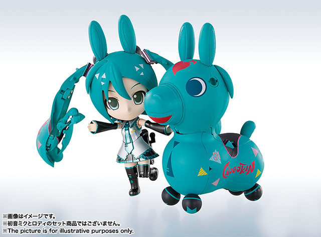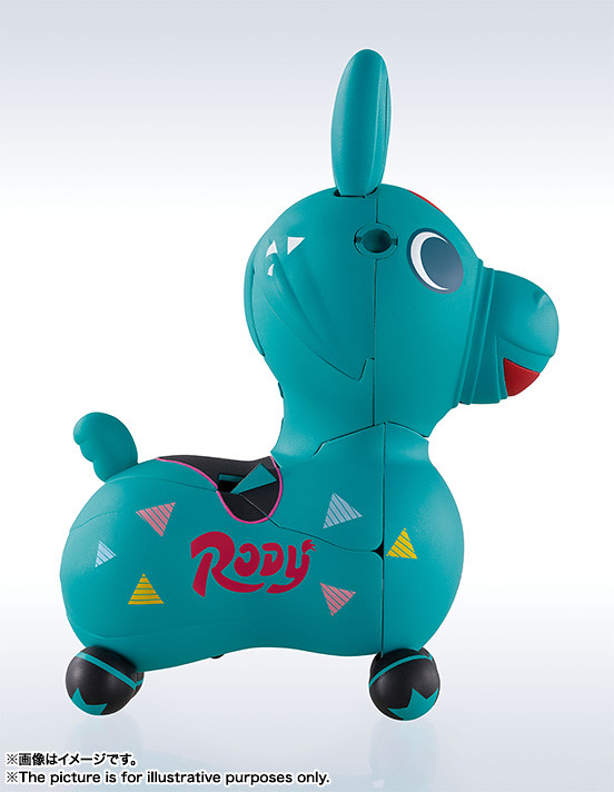 這次的作品,將藉由『超合金』系列多年來所累積的技術,讓人氣虛擬偶像「初音未來」完全變型為可愛的跳跳馬玩偶「RODY」!除此之外,還將附屬了初音不可或缺的經典道具「鍵盤」與「蔥」,並且還有「歌唱」與「微笑」兩種不同風貌的表情零件可供交換,呈現出初音多采多姿的各種樣貌~