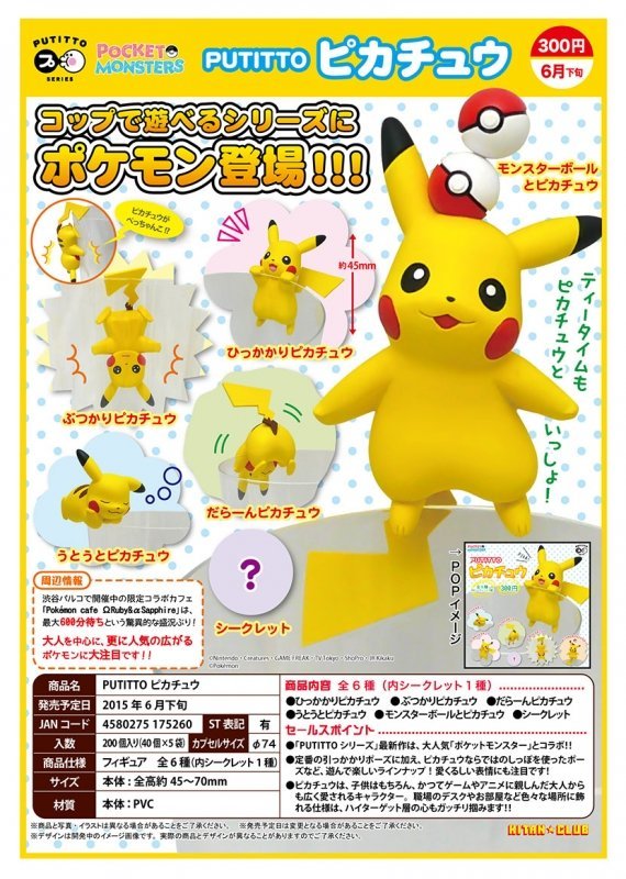 推出杯緣子「コップのフチ子」大受歡迎的奇譚俱樂部公司,其“PUTITTO系列”這次將與人氣角色的神奇寶貝《皮卡丘》合作了。