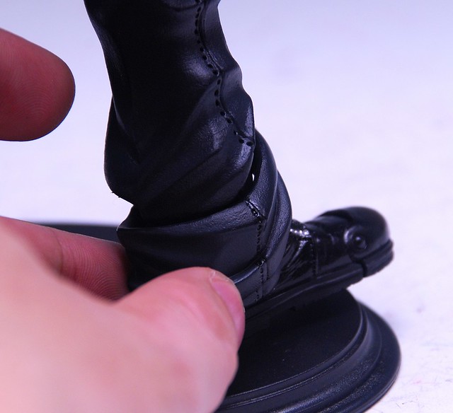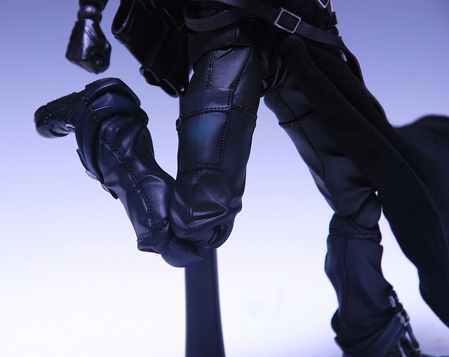 ▼腿部的可動性還不錯,褲子雖然不是皮的,不過塗裝的技術還算不錯,讓褲子看起來很像皮的質感