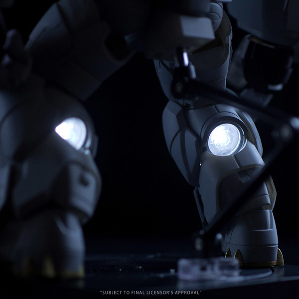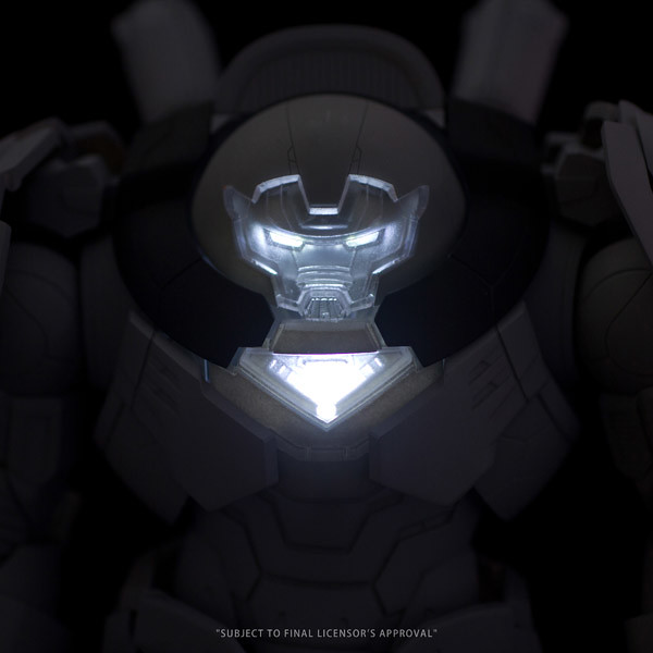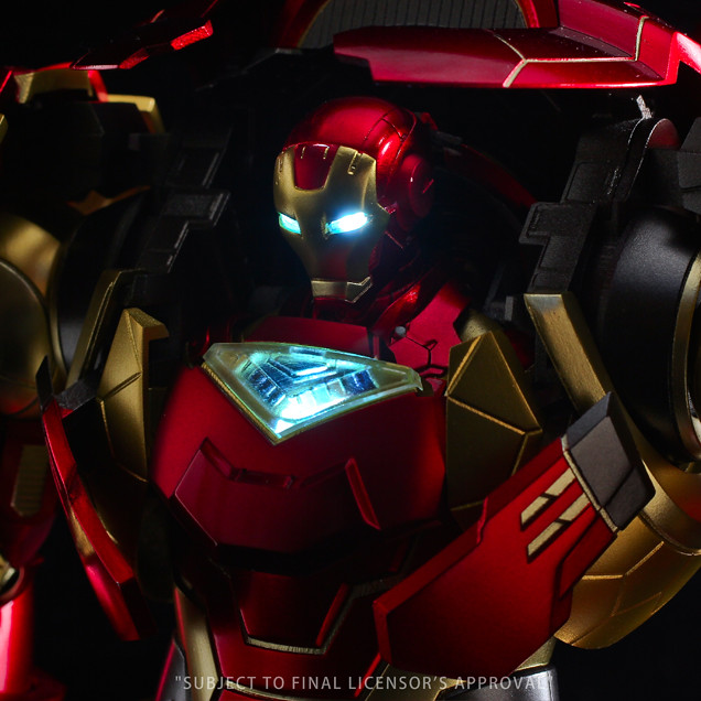 有興趣的玩具人可以參考下方影片連結,並在浩克破壞者的頭面部分使用透明材質來製作,將浩克破壞者的頭部向內壓入後各部件會連動跟著展開,能夠看到裡頭操縱著浩克破壞者的《鋼鐵人 血邊裝甲》的上半身,其雙眼、胸、膝蓋、膝窩、掌心衝擊光束發射器、背部等等多處都配置有Led燈的發光裝置!
