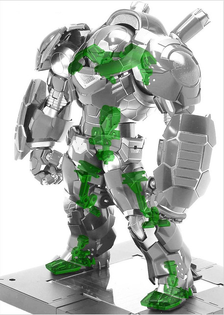 ▼ 照片中綠色部分為千值練「RE:EDIT《鋼鐵人》浩克破壞者」所採用金屬零件的區塊。