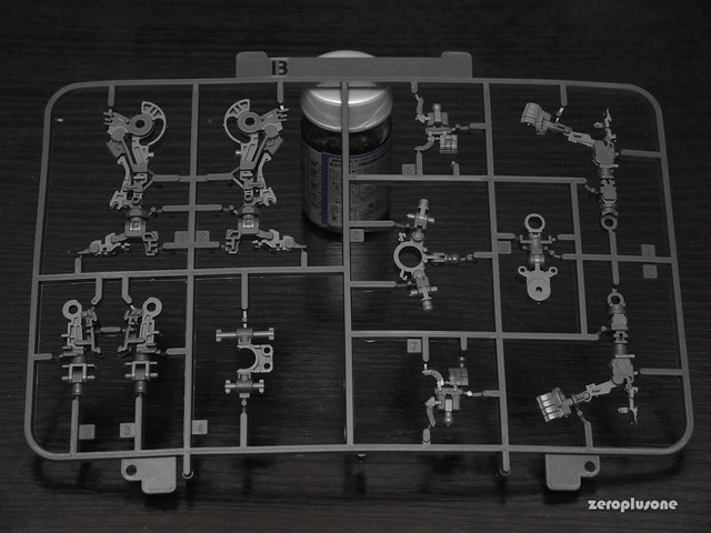 令人驚豔的B框架,兼用EXIA的骨架,零件上有很多合模毛邊,畢竟能天使已經兼用太多次了...