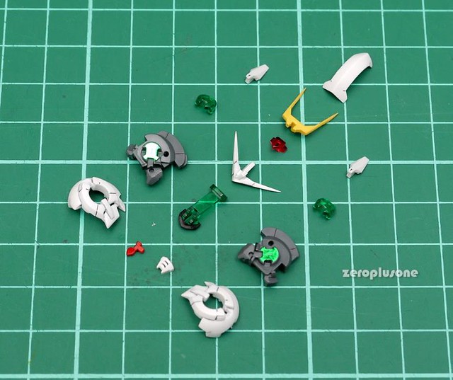 接下來是頭部,零件還不少,這次零件的精度有比上次飛翼好一些,不過下巴還是會稍微歪歪的XD