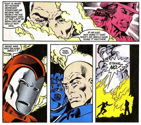 曾多次想收購史塔克企業都沒成功,於是開始動用色誘、武力、經濟競爭打壓東尼,導致他開始酗酒,加上當時的神盾局也想要鋼鐵人裝甲技術,於是被斯坦說服而協助併購,而羅尼暫時代替東尼穿上鋼鐵裝。