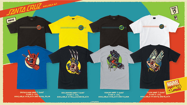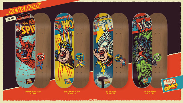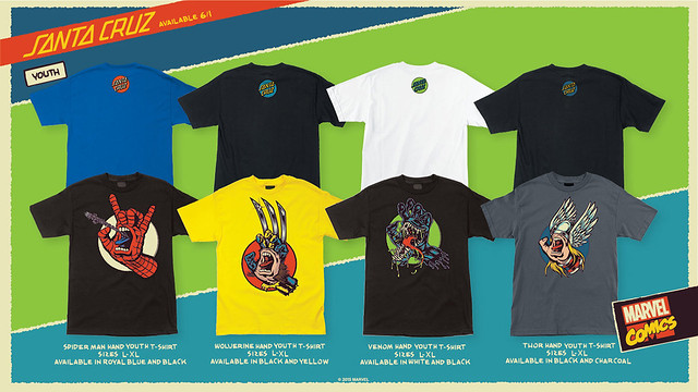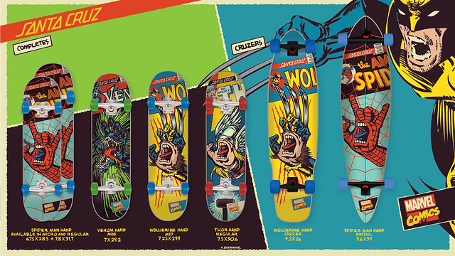 Santa Cruz 的創辦人Jim Phillip 最知名的藝術圖像就是「吶喊之手」(Screaming Hand)了,而這次所要推出的作品則是結合了四位包含了正派與反派的MARVEL 角色頭像結合吶喊之手的造型所設計出來的圖案。包括了:蜘蛛人、索爾、金鋼狼以及猛毒。這一系列精心製作MARVEL 聯名商品,各位玩具人們請備好荷包準備收藏前所未見的歷史性紀念商品吧。