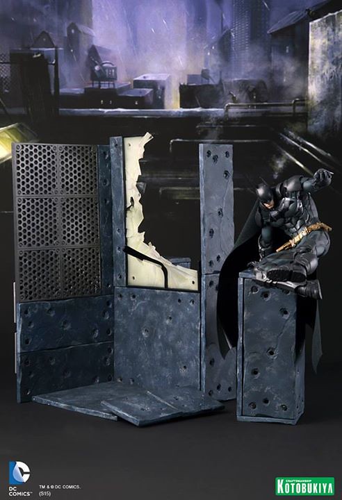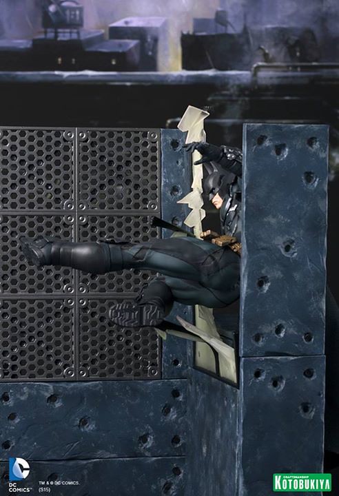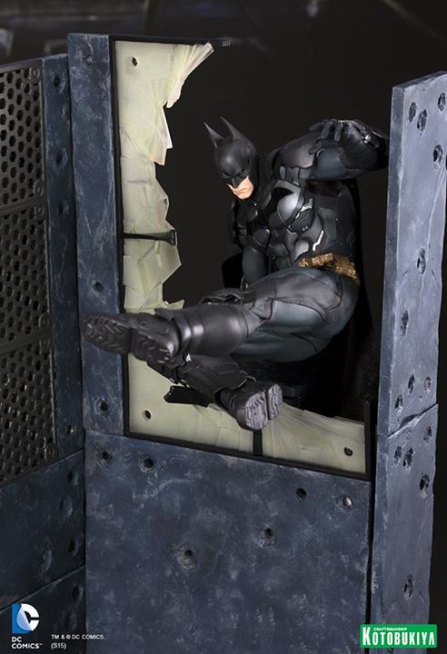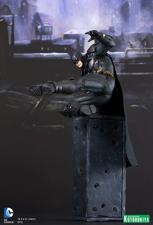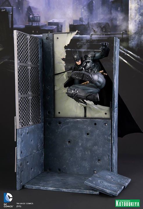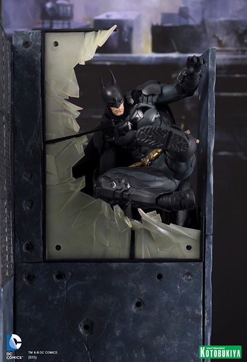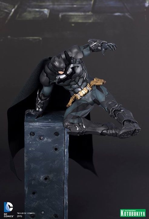 日壽屋玩具公司的ARTFX+ STATUE立體雕像系列預計推出ARTFX+ 『バットマン:アーカム・ナイト』 バットマン アーカム・ナイト 1/10 簡易組立キット,以來自電玩改編遊戲《蝙蝠俠:阿卡漢騎士》當中蝙蝠俠的新裝甲服裝造型製作,並且以其單手支撐身體踢擊破窗的姿勢來呈現這次的作品。