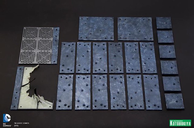 附有以「城市」為主題的組裝場景配件「ビルドアップ・ジオラマベース」名稱暫時翻譯,可以引導你的想像力自己互相結合其配件,像是把工廠變成廢墟模樣,或是外壁的鐵絲網破損在昏暗的走廊等等,每一個簡單的組合配件有著直徑約4mm的組合圓柱和孔洞適合簡單組裝,喜歡《蝙蝠俠:阿卡漢騎士》系列的玩具人可以參考一下歐!